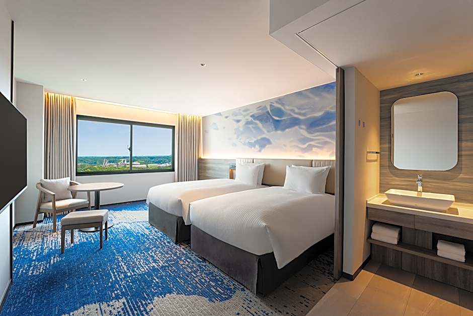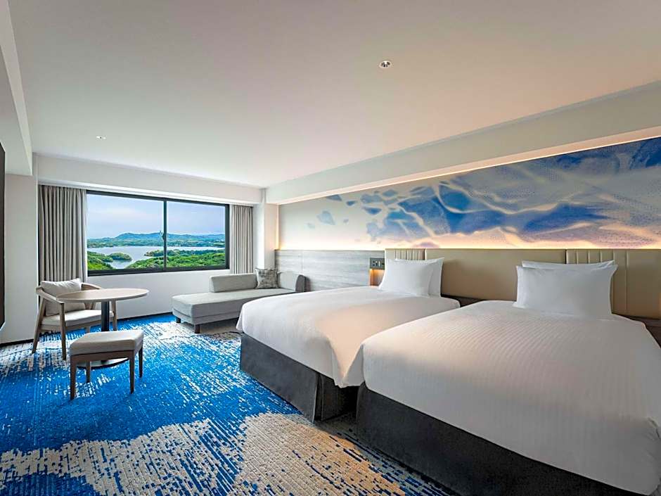 The family room includes a private bathroom, well-fitted with a bath, a shower, a bidet, a hairdryer and slippers. The air-conditioned family room offers a TV, tatami, executive lounge access, a wardrobe as well as sea views. The unit has 2 beds and 3 futons.