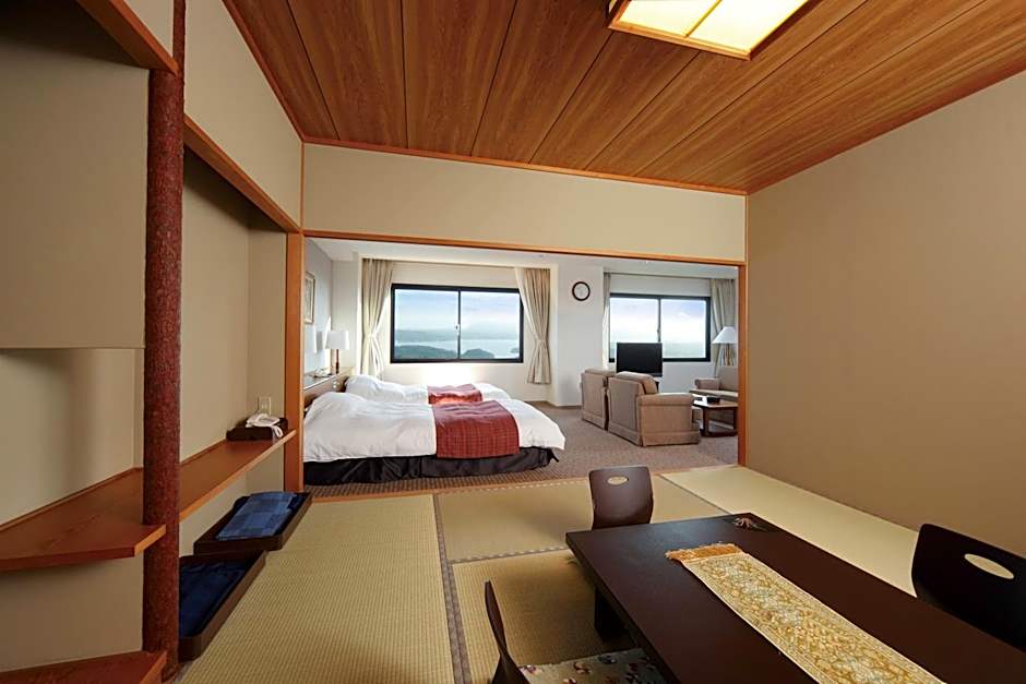 Classic Junior Suite, Japanese-Western style, 2 single beds and 4 futon beds, Ocean/Sea view1 adult is 775 square feet and includes 2 single beds 80-130 width plus hairdryer, safe, and slippers.