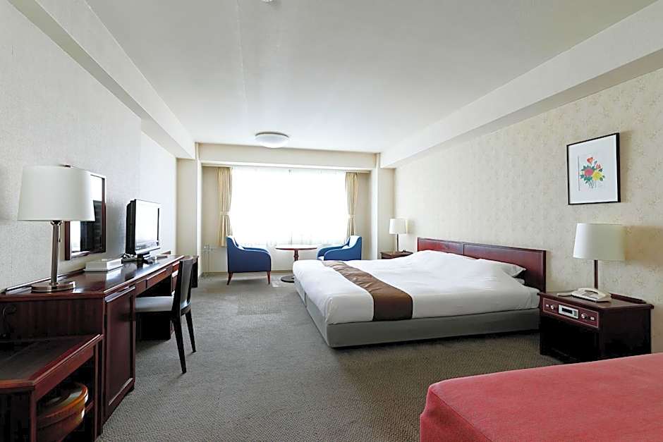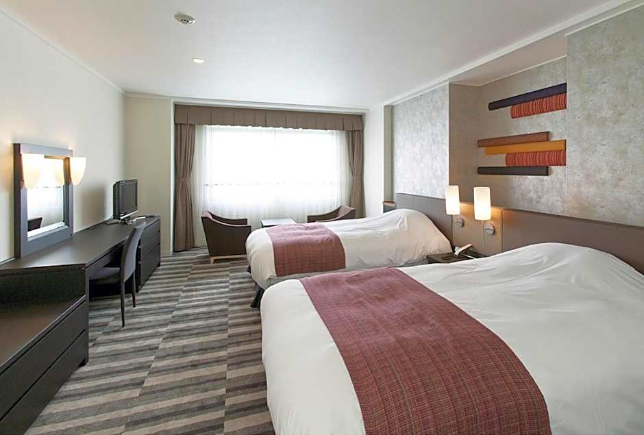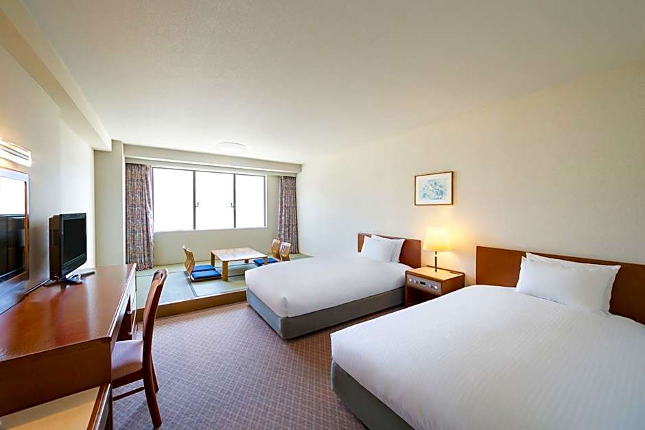 Classic Room, Japanese-Western style, 2 single beds and 3 futon beds, Ocean/Sea view is 388 square feet and includes 2 single beds 80-130 width plus satellite tv , hairdryer, safe, and slippers.