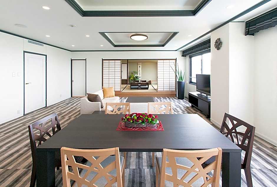The family room includes a private bathroom, well-fitted with a bath, a shower, a bidet, a hairdryer and slippers. The family room features air conditioning, tatami, executive lounge access, a wardrobe, as well as a TV. The unit has 2 beds and 3 futons.